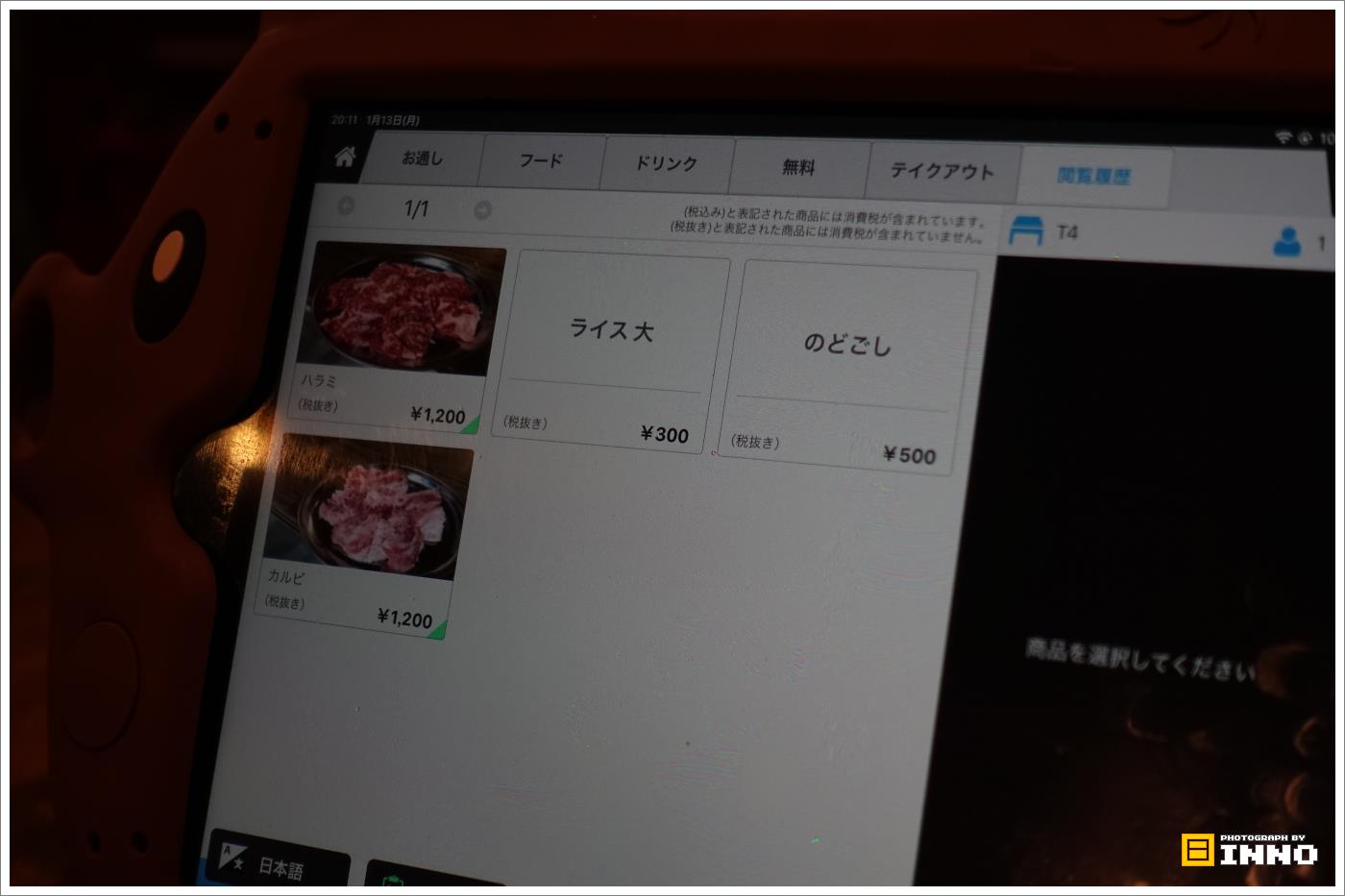 注文はタッチパネルでする。