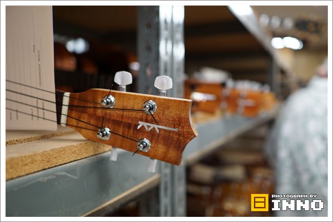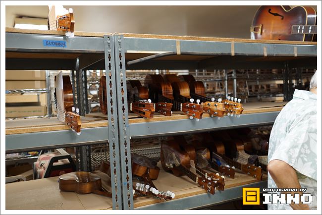 工場の中の2階に行くとたくさんのウクレレがありました。