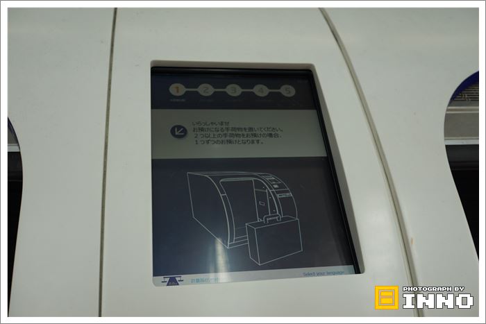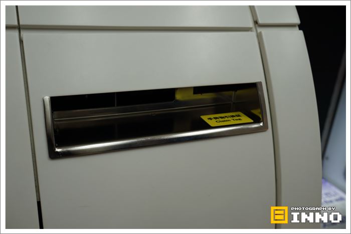 スーツケースを入れるところと、タッチパネルと、紙が出るところがありました。