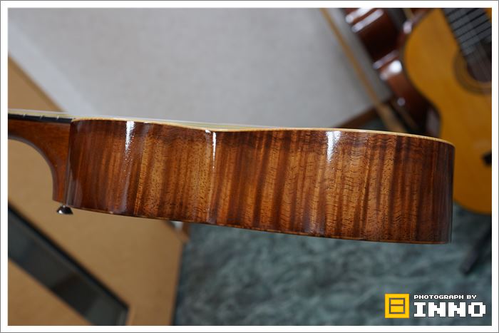 側面のすべてがはっきり見えるハワイアンカーリーコア3Aグレードが使用されています。
