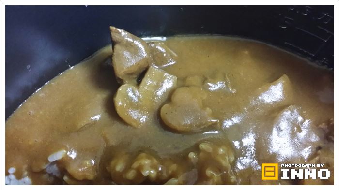 カレーを容器に入れてみると大きい具が入っています。