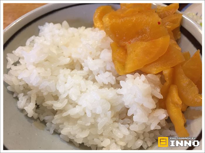 ご飯にたくあんをのせて一緒に食べると美味しいですよ