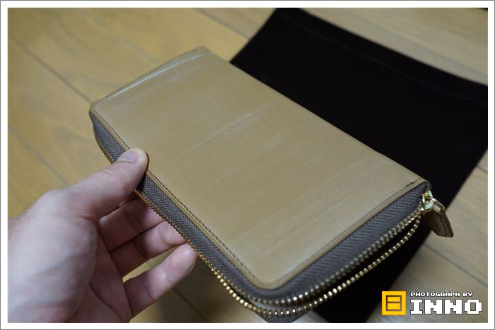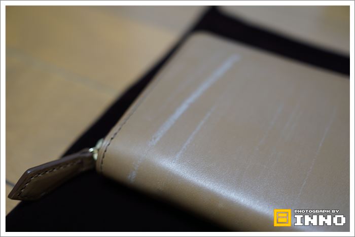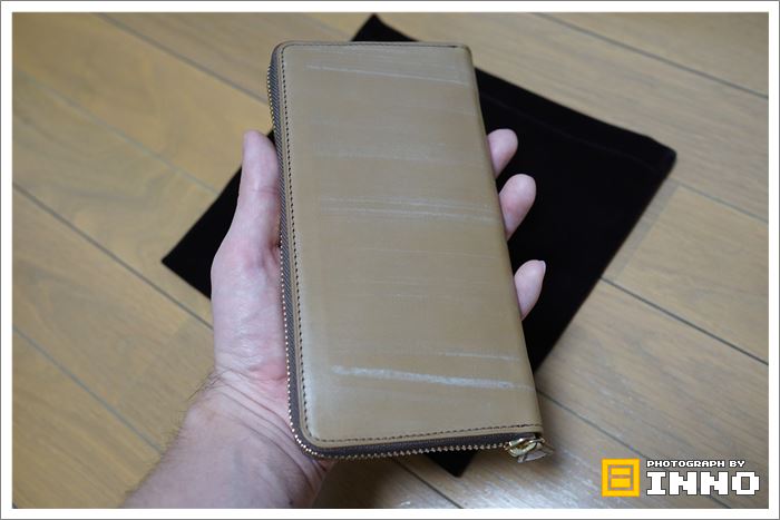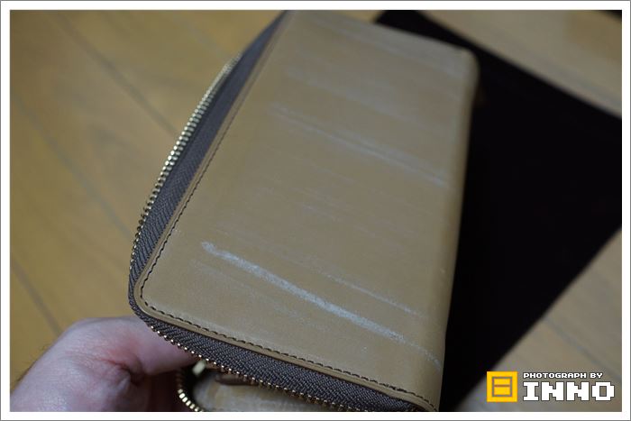 財布の表面に白くなっているのはキズではなくロウだそうです。
