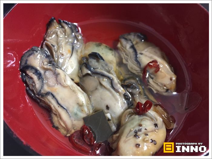 お酒と一緒に牡蠣をオイルにいっぱい付けて食べました。