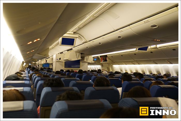ANA476便 B777-300は通路が2つで3-4-3人が座れる席になっていました。