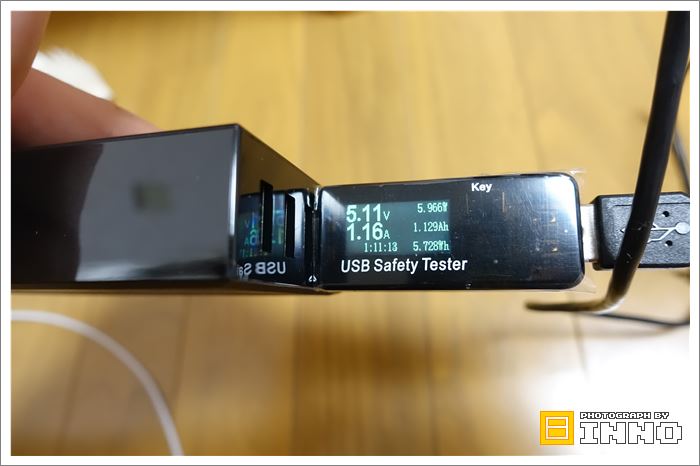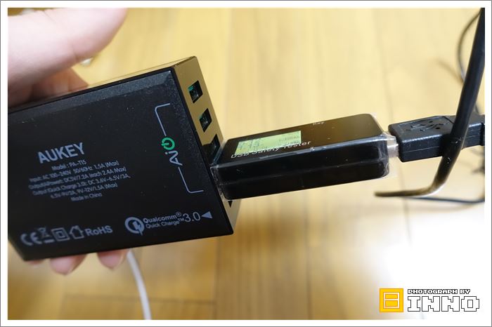 USB電圧テスト機を接続して、一般AiUSB充電ポートに接続しました。