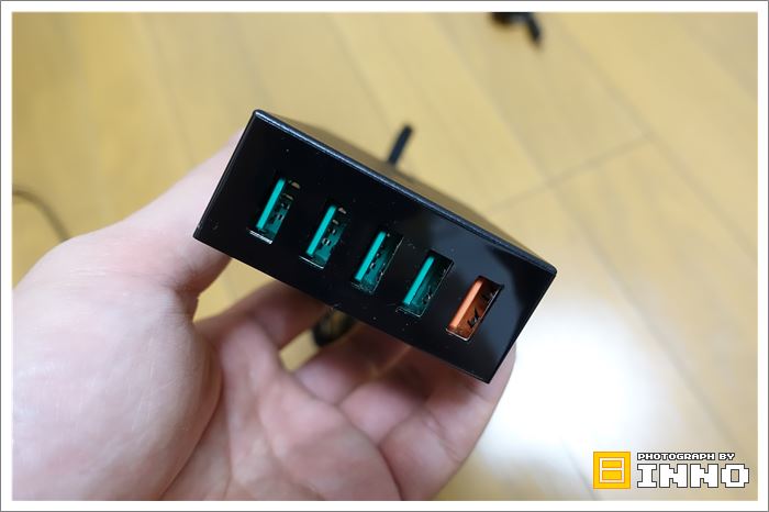 オレンジ色の1つのポートはQuick Charge 3.0対応ポートです。
