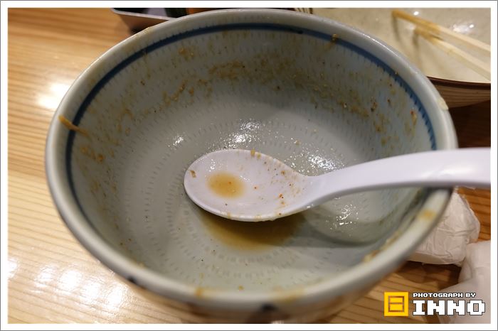 スプーンを使用してつけ汁を飲みます。