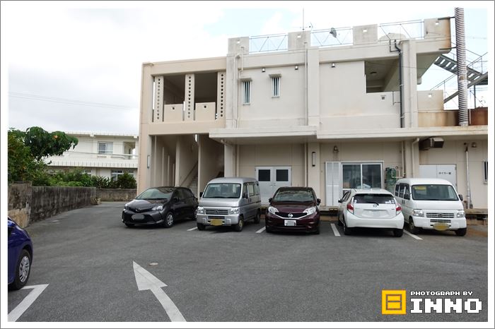 あの車の後ろにある建物の裏にも駐車スペースがあります。