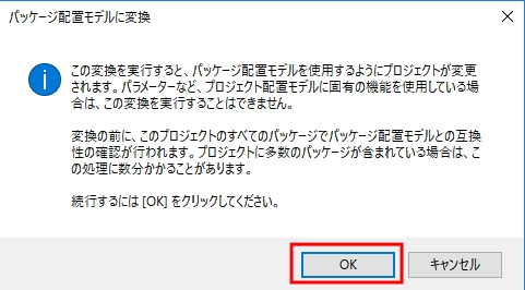 「プロジェクト」の「パッケージ配置モデルに交換」をクリックします。