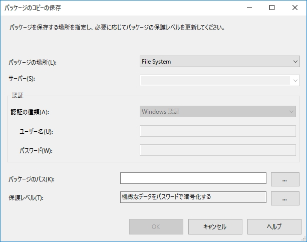「Package.dtsxのコピーに名前を付けて保存」をしたい場合、「SSIS パッケージ ストア」の指定ができなく以下のようにFileSystemに固定になる場合があります。